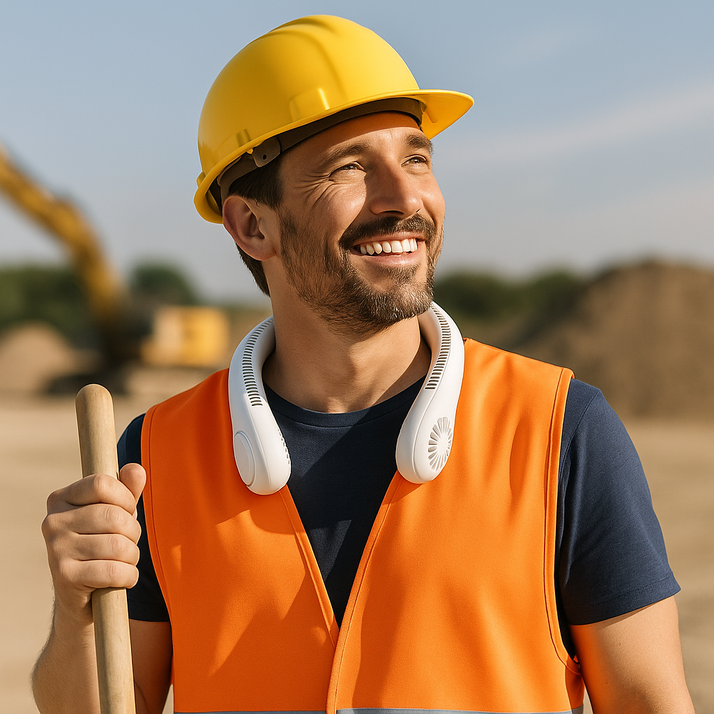 No más jornadas sofocantes. Con NeckAir, mantente fresco incluso bajo el sol más intenso.