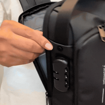 Cuenta con cremalleras ocultas, materiales anti-corte y cerradura de combinación que protegen tus pertenencias en espacios concurridos como transporte público, aeropuertos o eventos.
